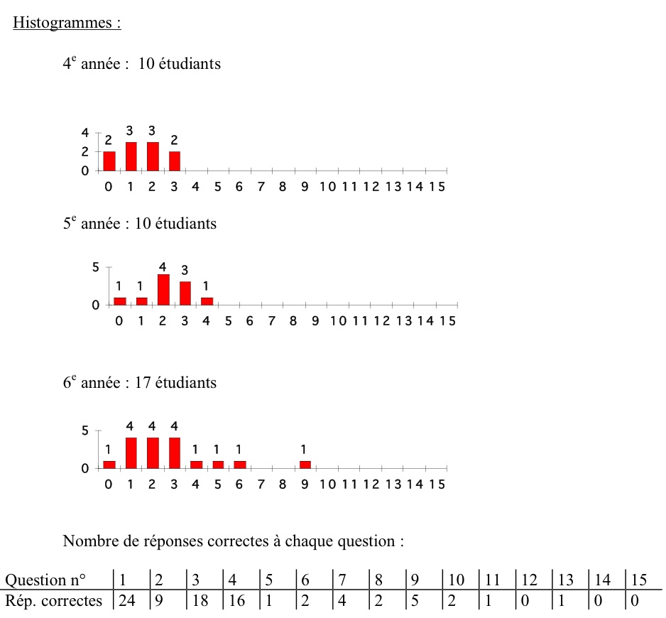 Voici les meilleurs résultats de ce concours, par ordre de mérite :